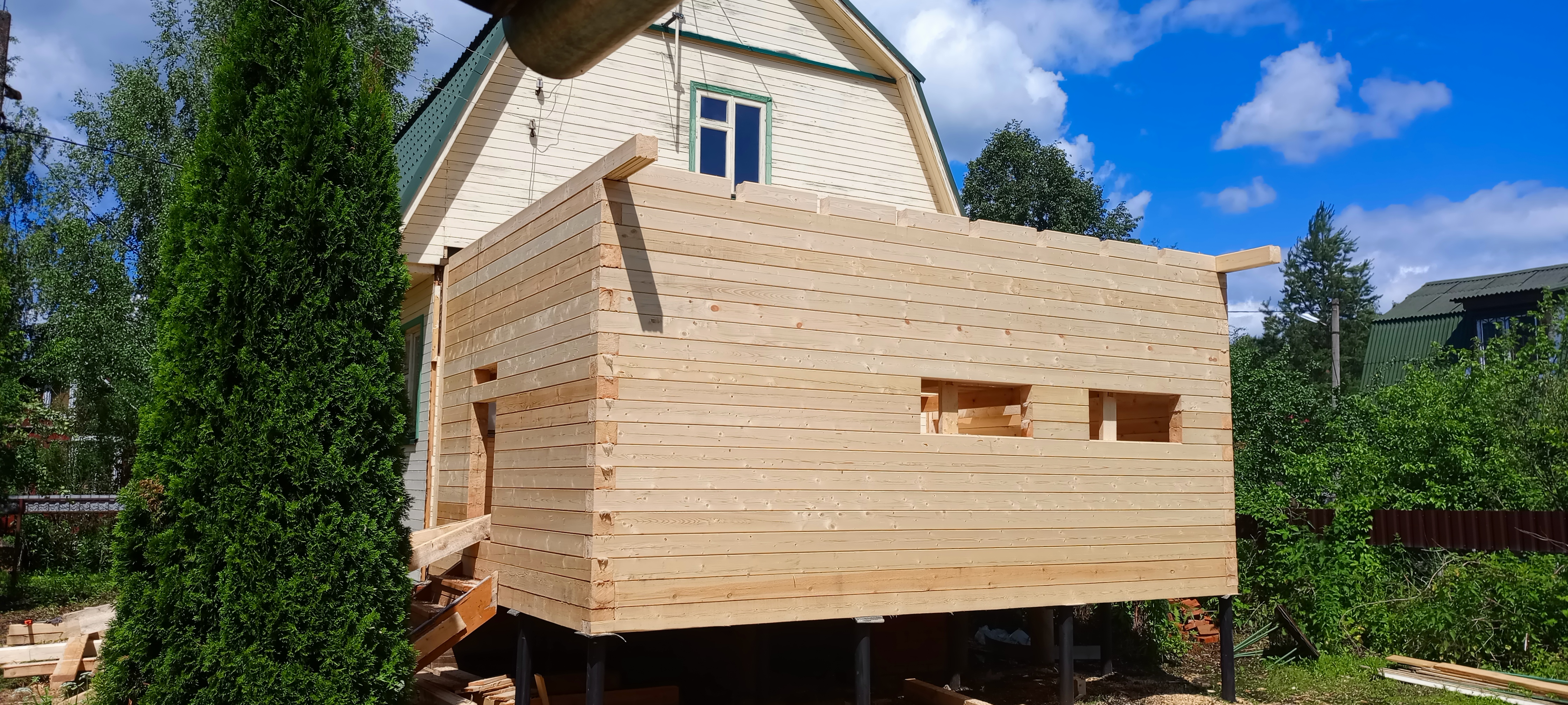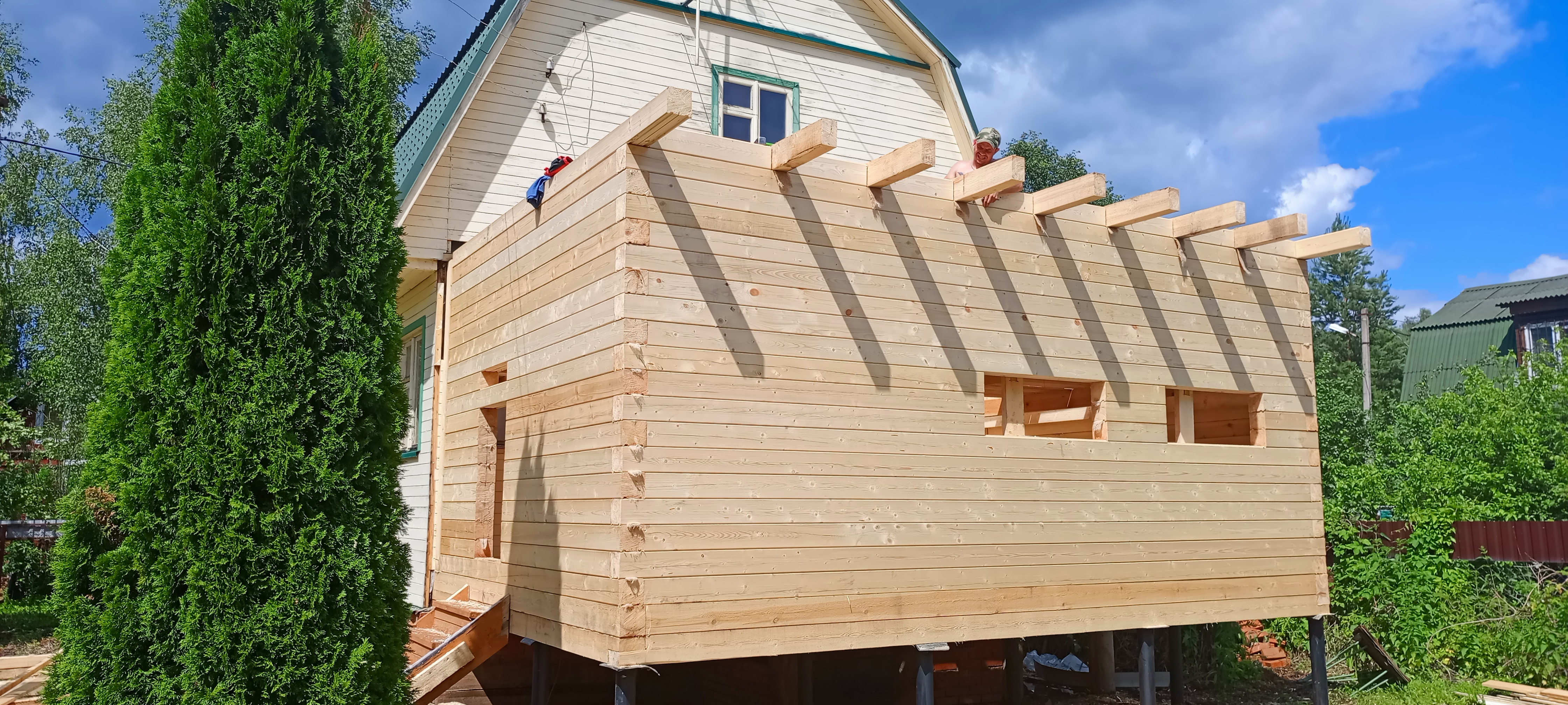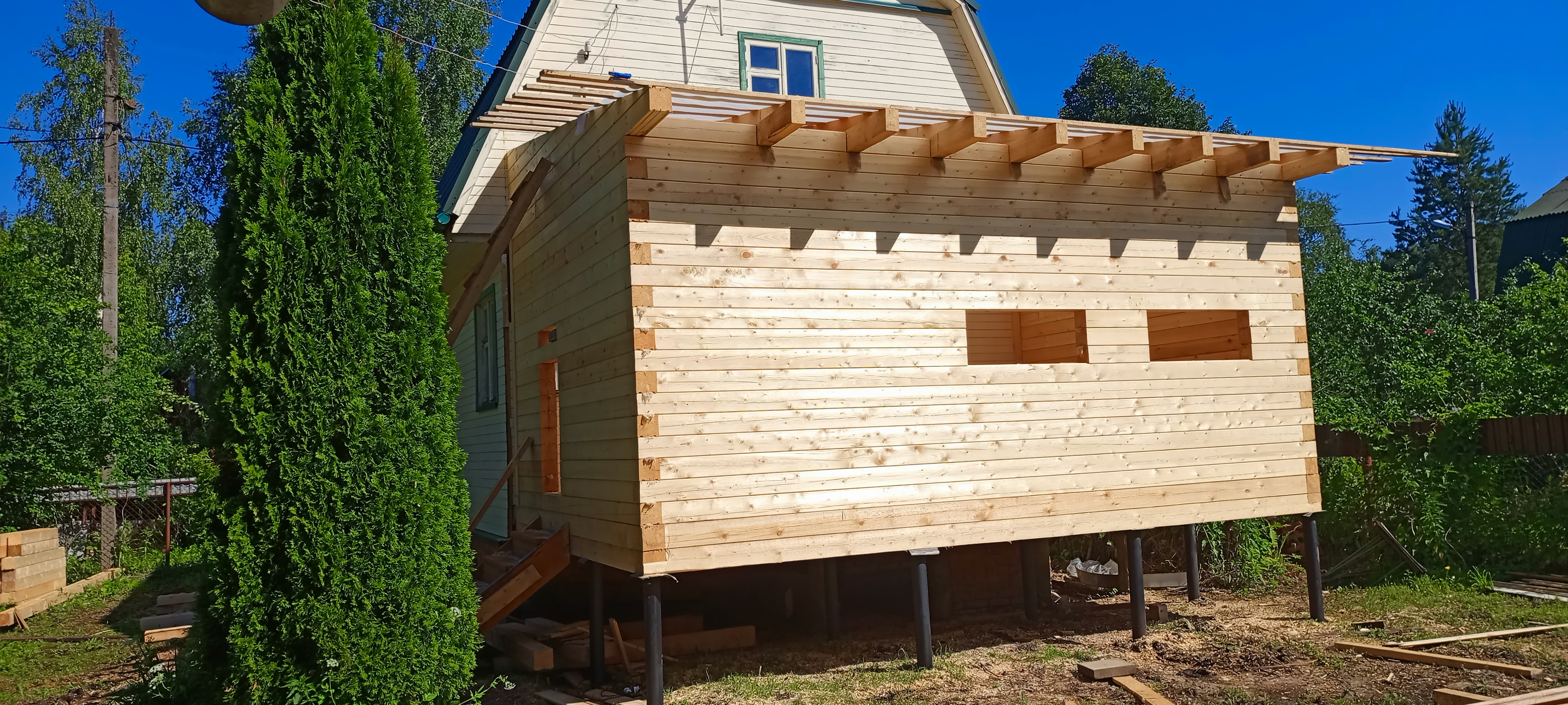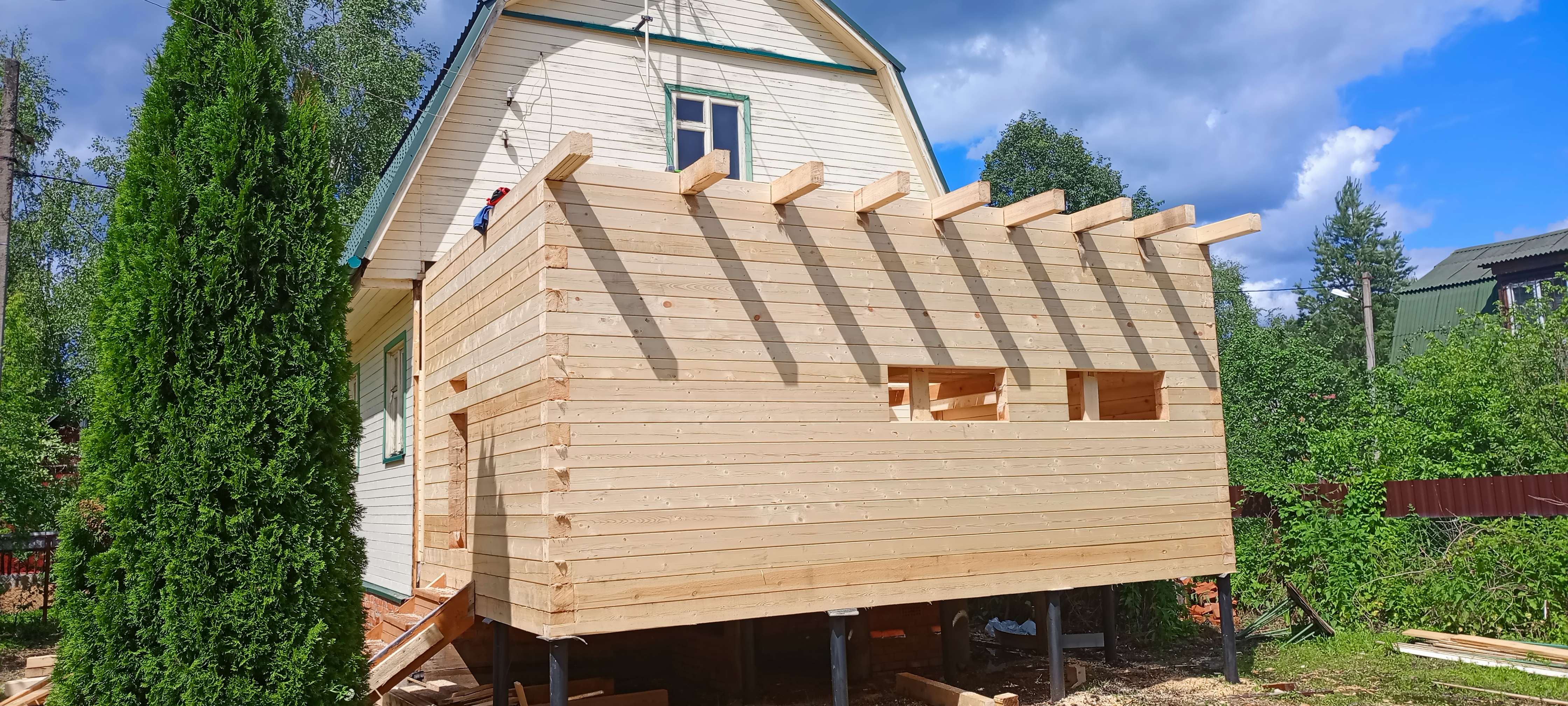 Пристройка из профилированного бруса 140*140 к дому. Южнофлотовец
