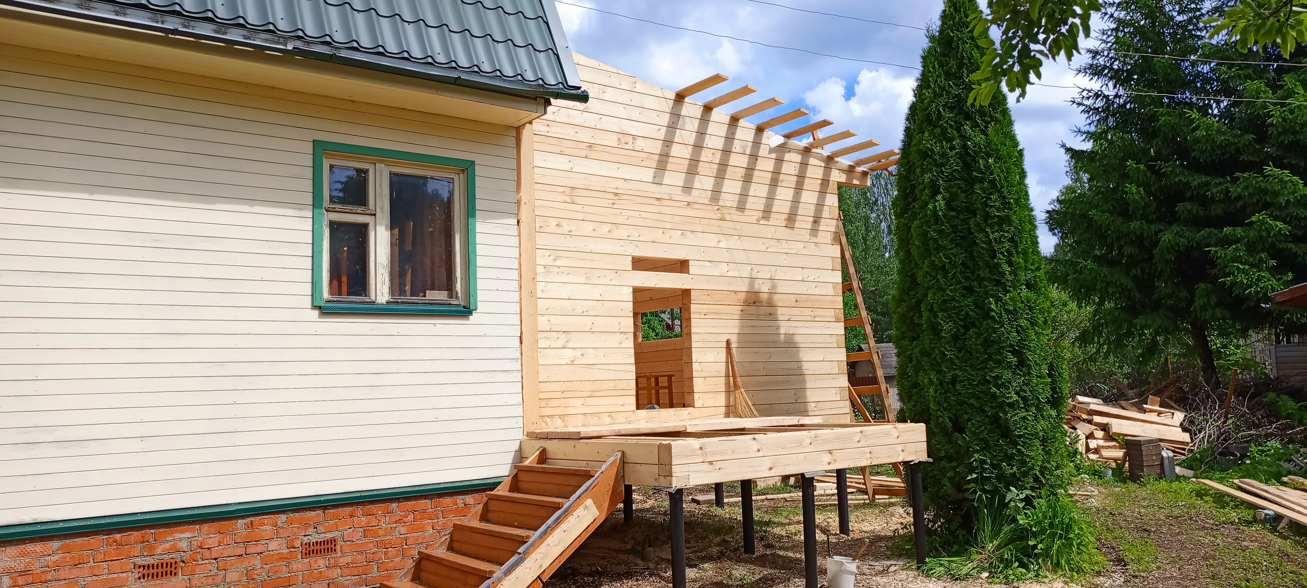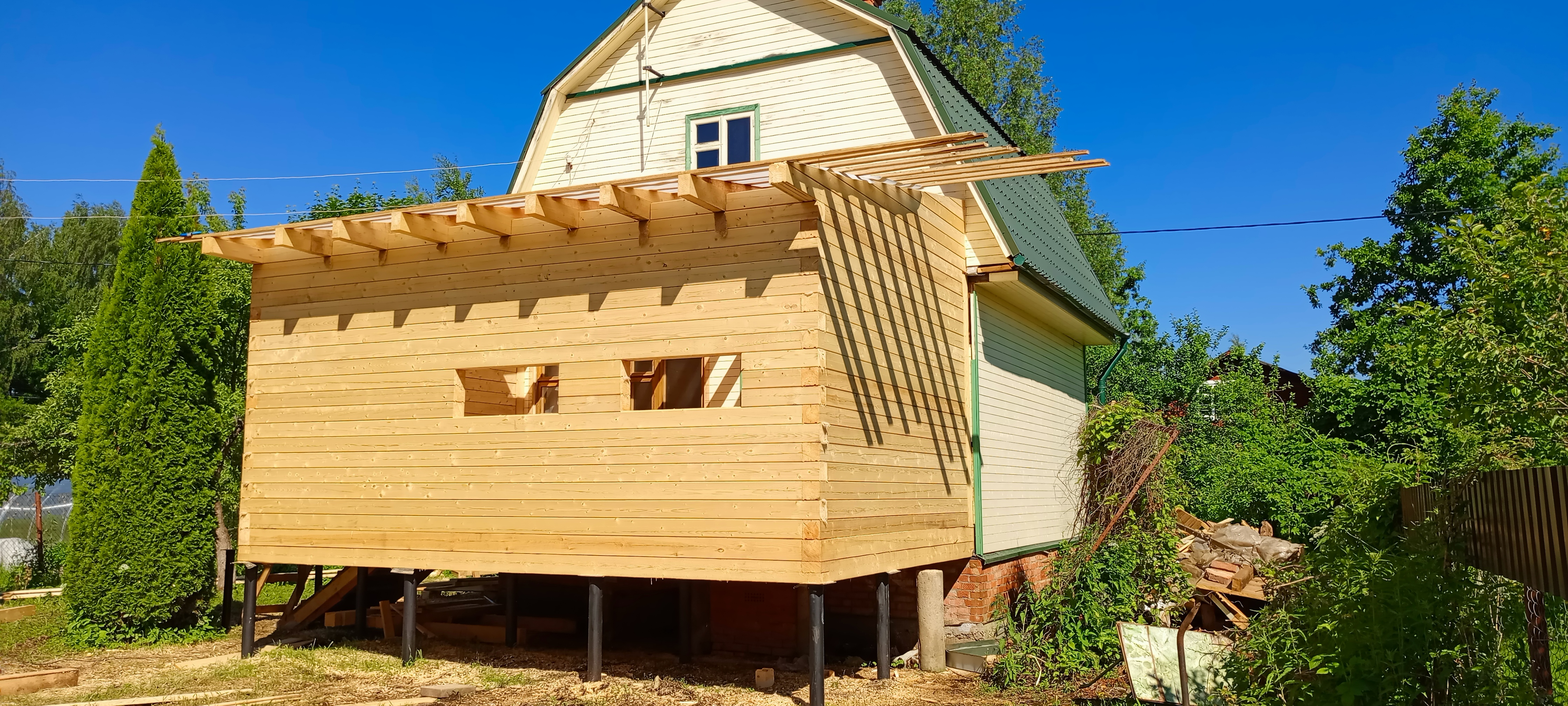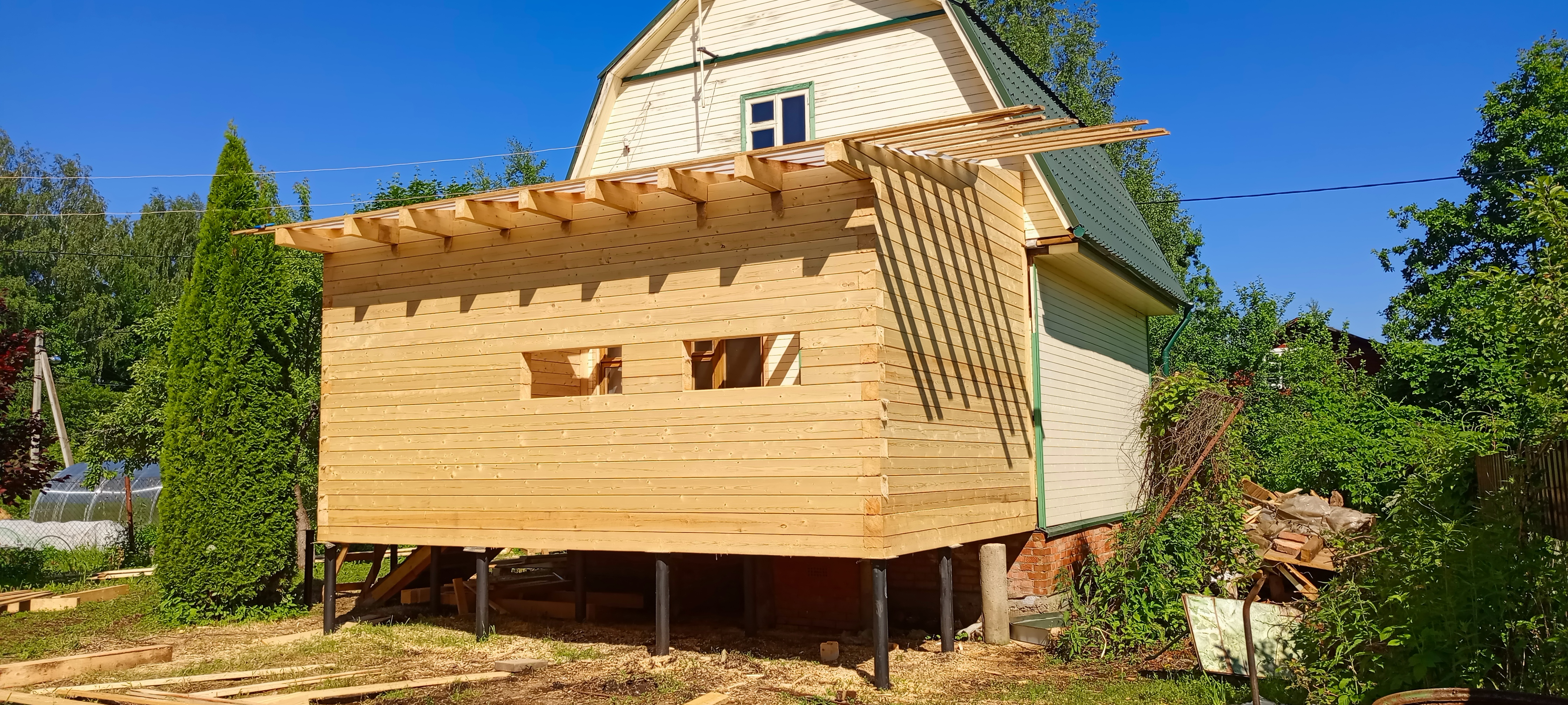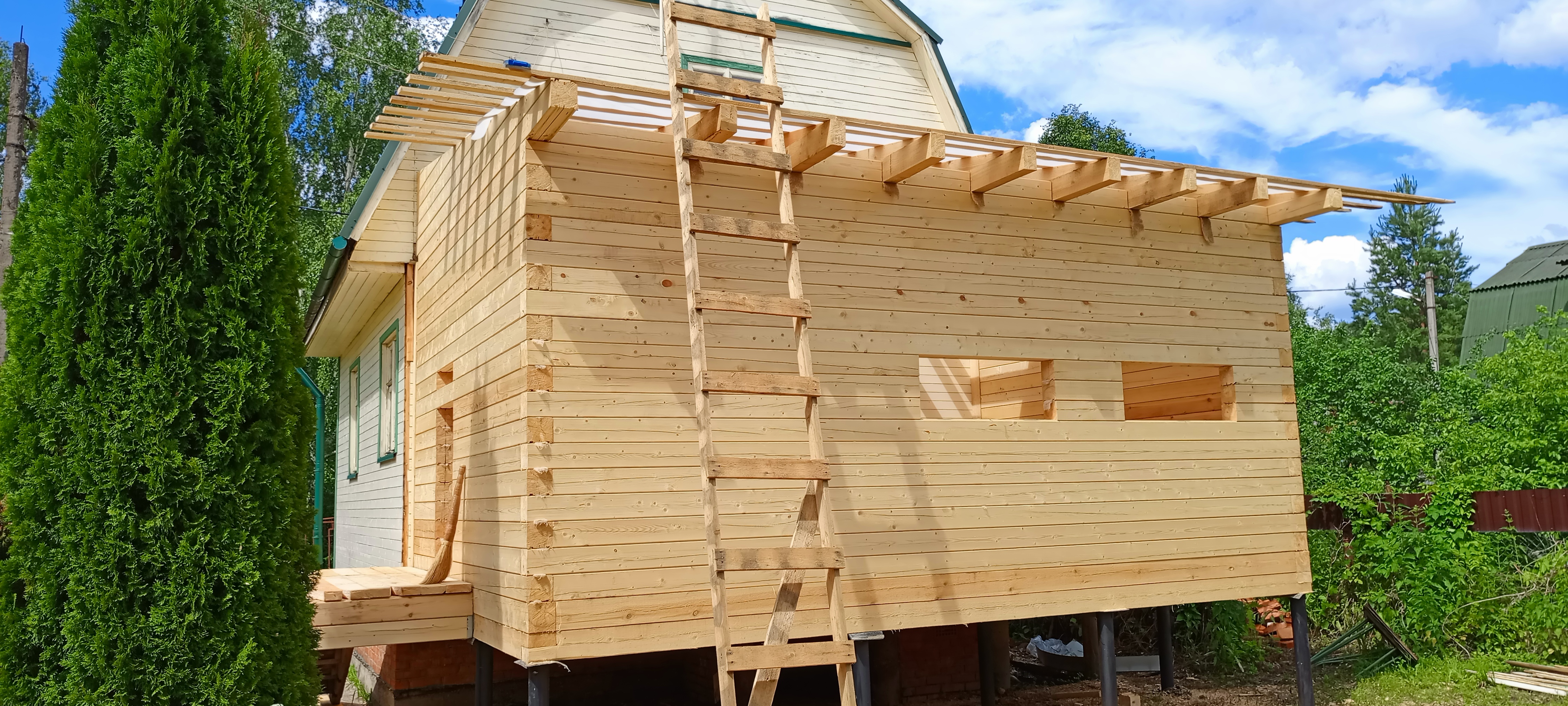 Пристройка из профилированного бруса 140*140 к дому. Южнофлотовец
