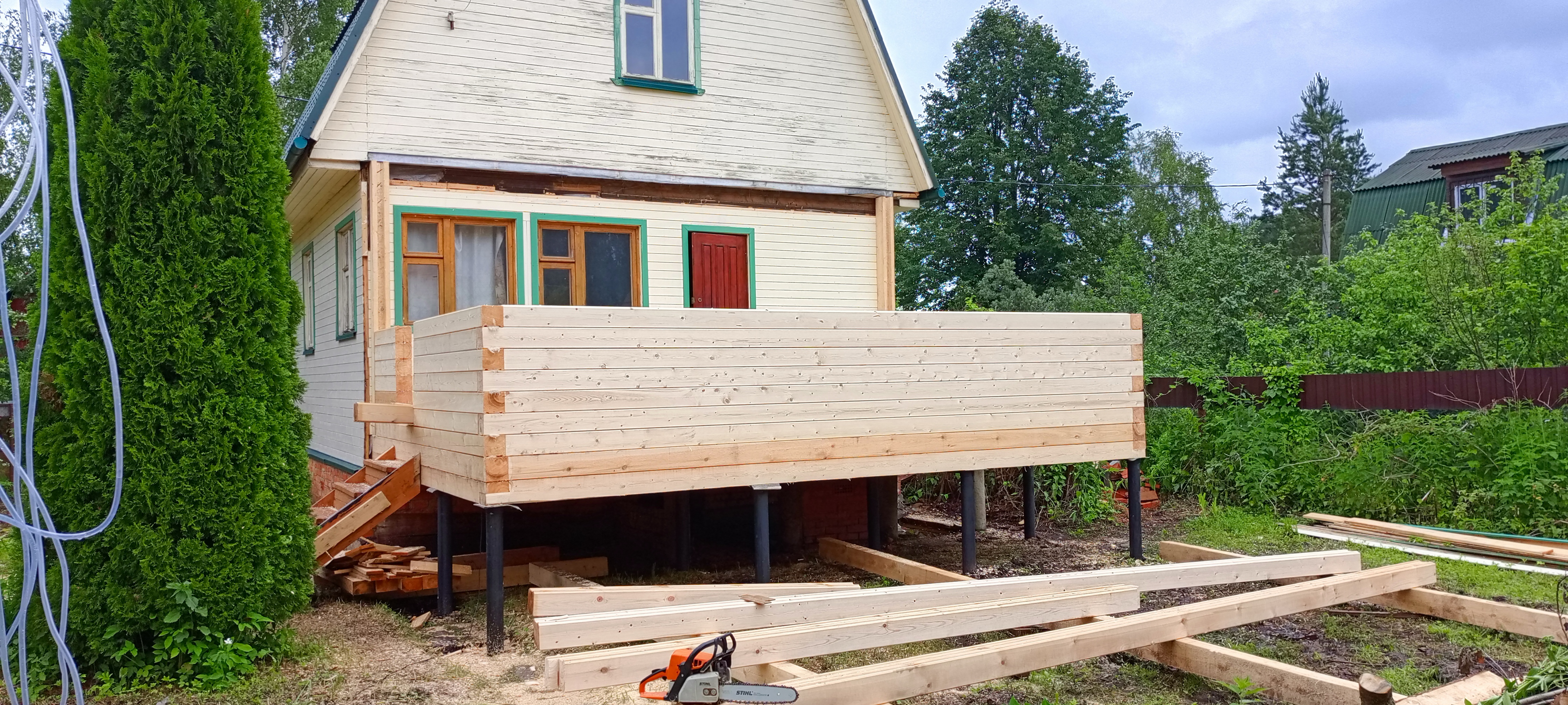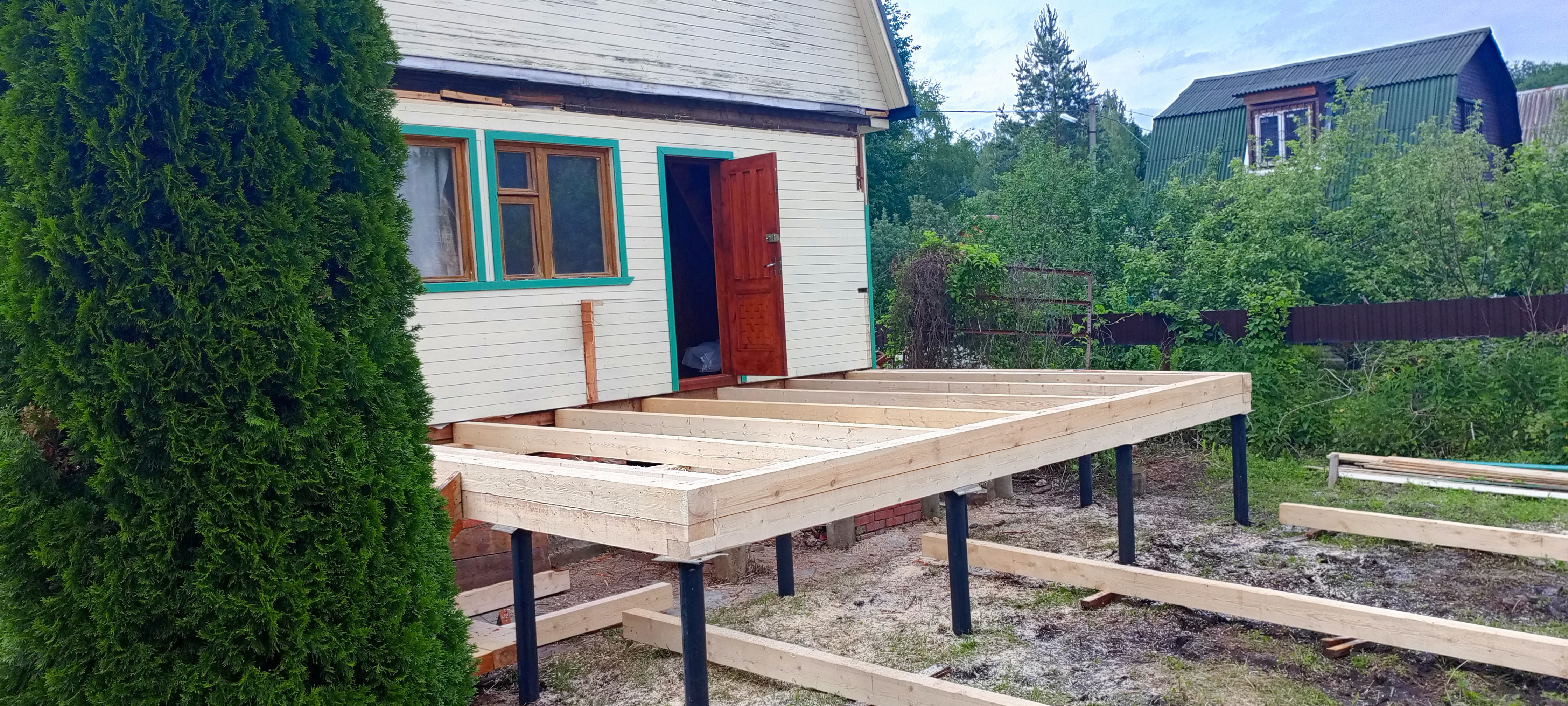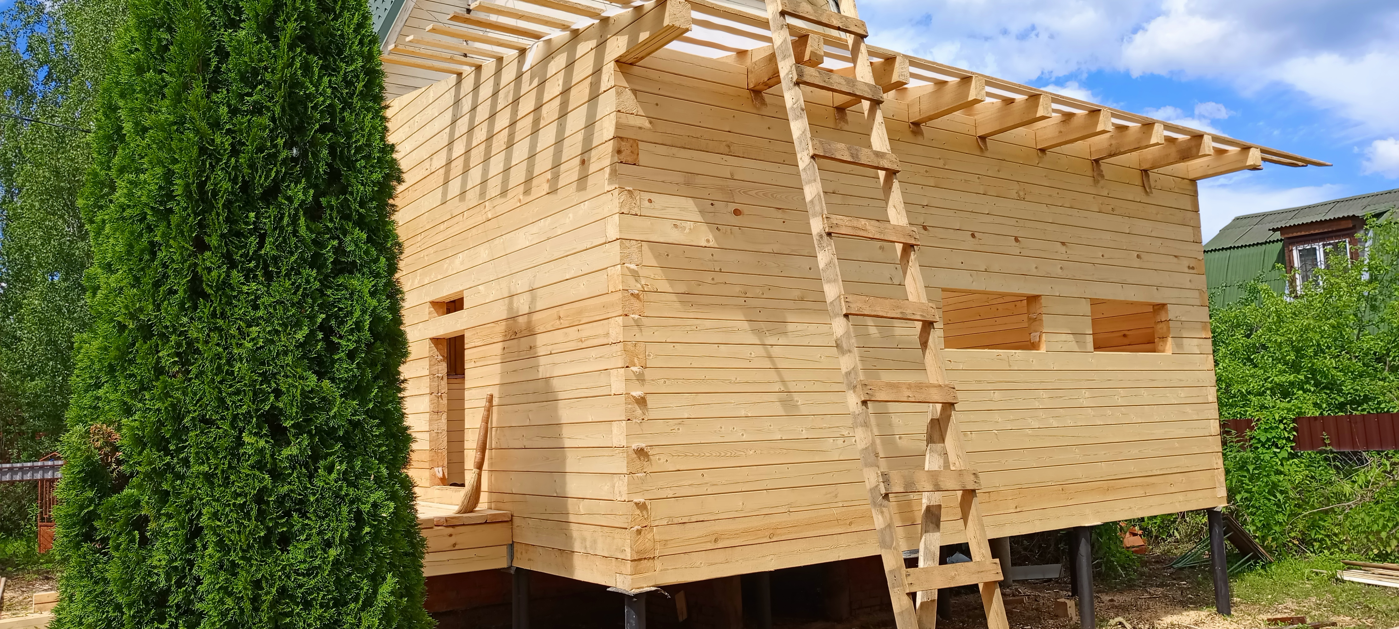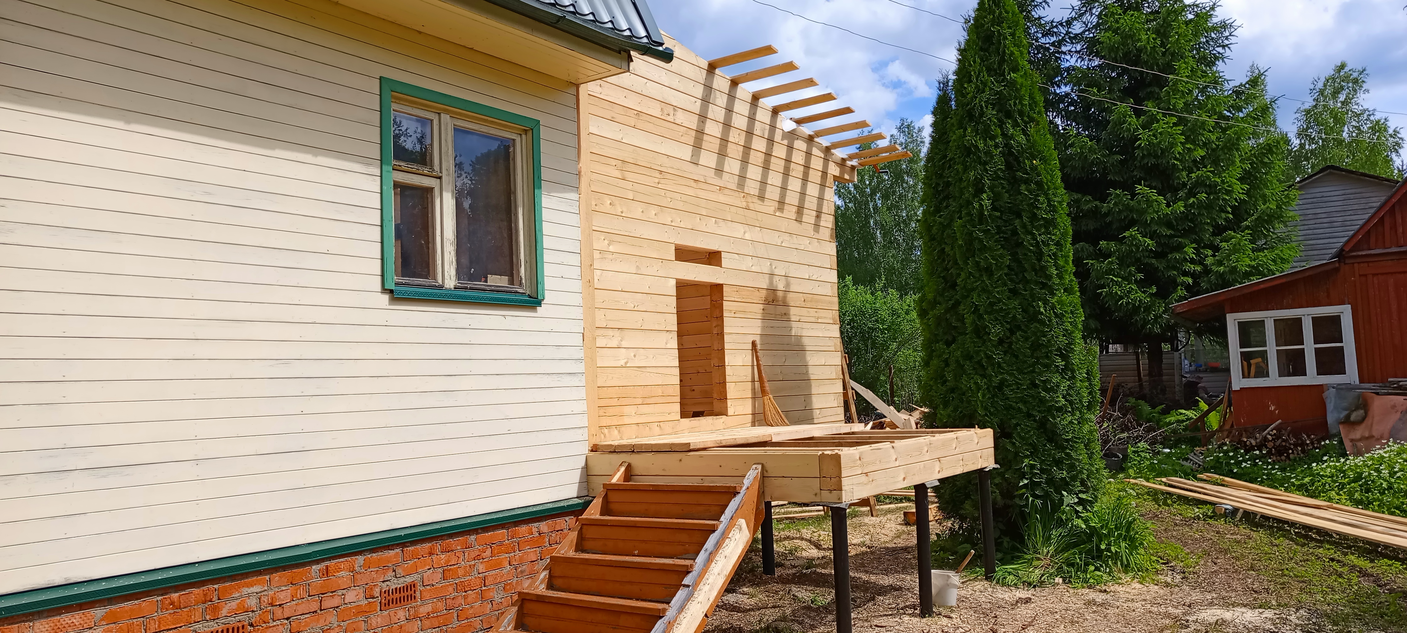 Пристройка из профилированного бруса 140*140 к дому. Южнофлотовец